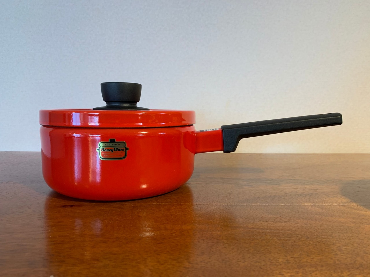 1947年創業の老舗琺瑯専門メーカー『富士ホーロー』のオリジナルブランドの『ハニーウェア』のソースパンです。